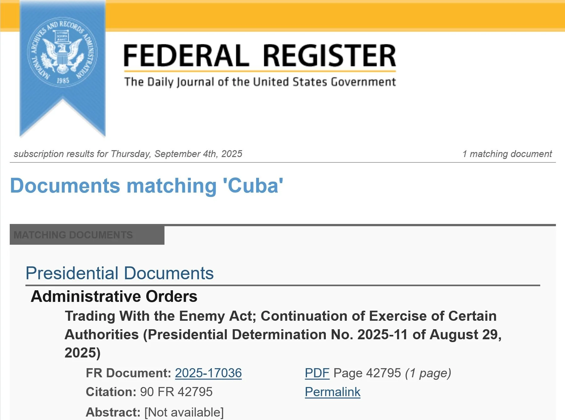 Link: Since 2022, US$191+ Million U.S. Exports To Cuba's Re-Emerging Private Sector- Including US$128 Million In Vehicles September 08, 2025