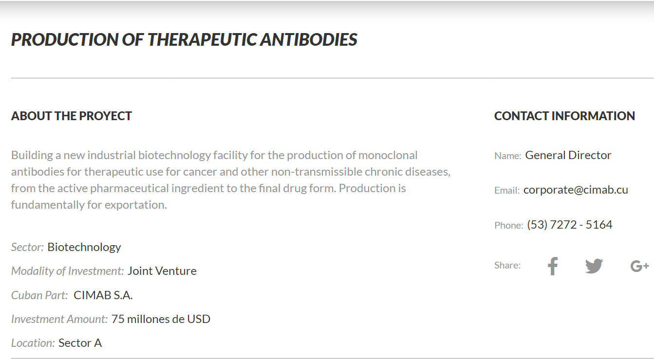 In October 2016, RPCCC received authorization from the Office of Foreign Assets Control (OFAC) of the United States Department of the Treasury in Washington DC to establish a commercial joint venture with CIM, to be located in the Mariel Special Development Zone (ZEDM) and which will be the first commercial joint venture with a United States-based entity in the Republic of Cuba licensed to research, develop, manufacture and market biotech products in the Republic of Cuba.